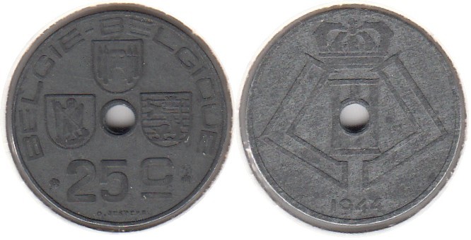 25 Centimes Belgien 1944