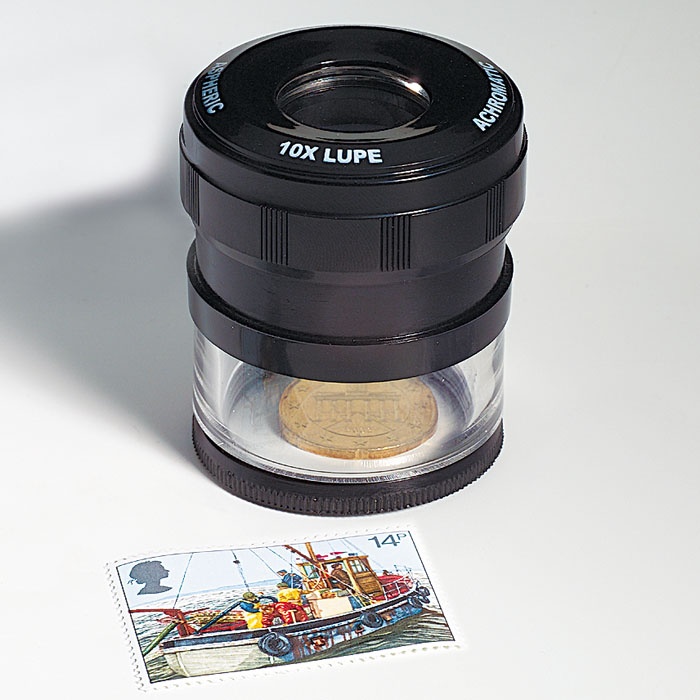Besonders zur Beurteilung eines Druck-Rasters bzw. eventueller Druckfehler oder Beschädigungen geeignet. Die hochwertige Linse gewährleistet ein verzerrungsfreies Bild. Mit abnehmbarer Milimeter-Skala. Die Scharfeinstellung erfolgt bei Bedarf mit Hilfe eines Gewindes. Linsendurchmesser 22 mm, Gesamt-Durchmesser 40 mm, Höhe 44 mm, 10,00 Diopter, asphärisch, Acrylic-Linse.